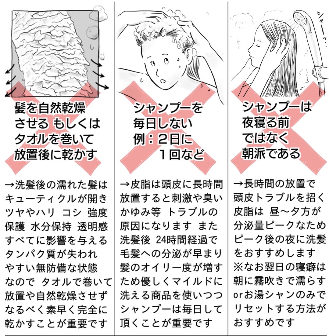 また、ヘアケアは普段無意識に行う事が髪や頭皮のトラブルの原因になるケースが多々あります。