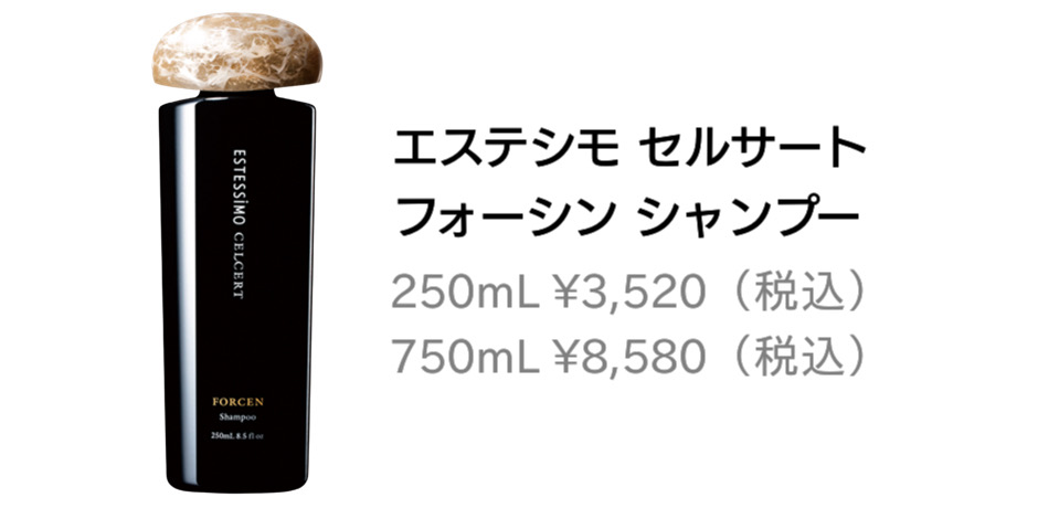 強くしなやかな髪のための頭皮環境を整えるとともに、髪そのものを補強し、弾力を与える「エステシモ セルサート フォーシン シャンプー」。