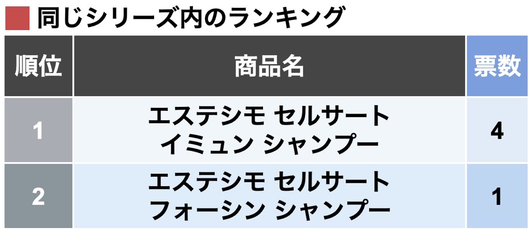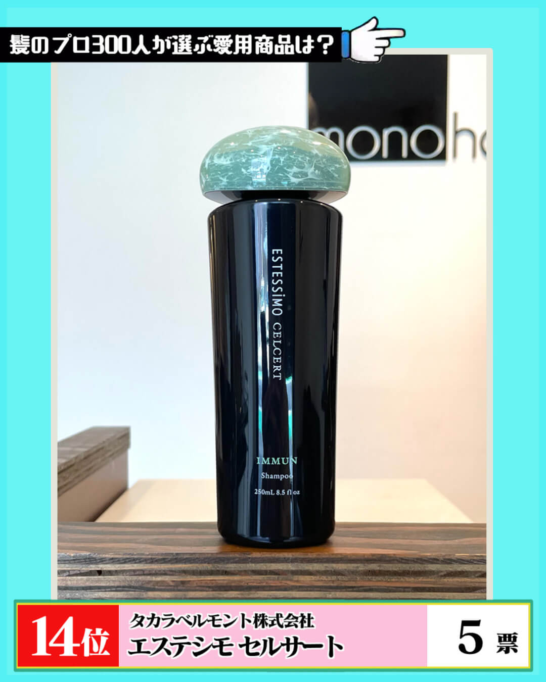 「エステシモ セルサート イミュン シャンプー」に入っており、シリーズの中でも特に美容師に支持されていることが分かりました。