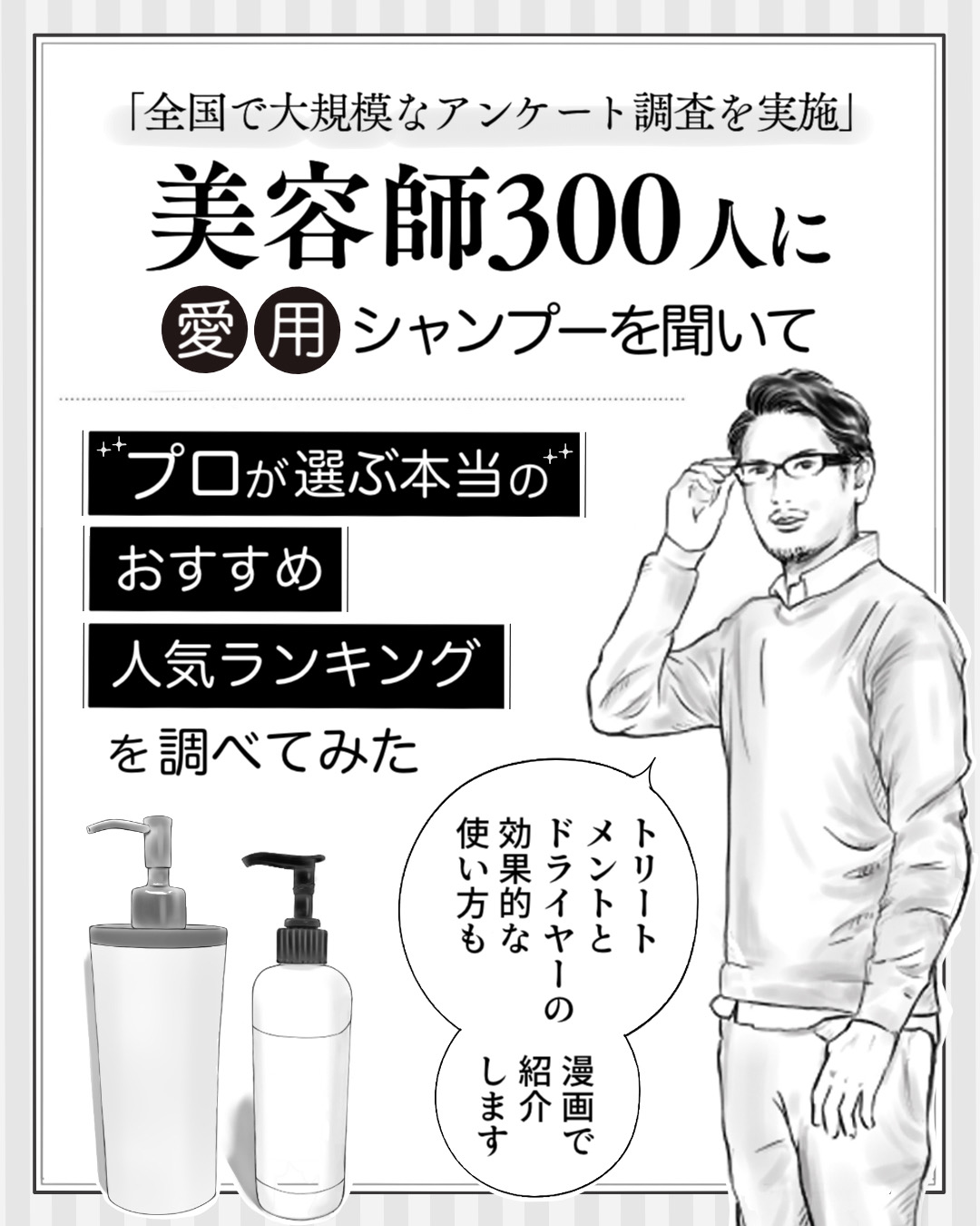 「美容師が普段から愛用しているシャンプーを調べれば、プロが選ぶ本当におすすめのシャンプーが見えてくるのでは?」という仮説のもと、美容師さん300人を対象に大規模なアンケート調査を行いました。
