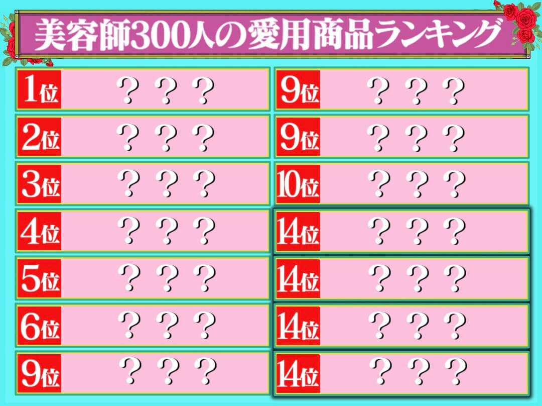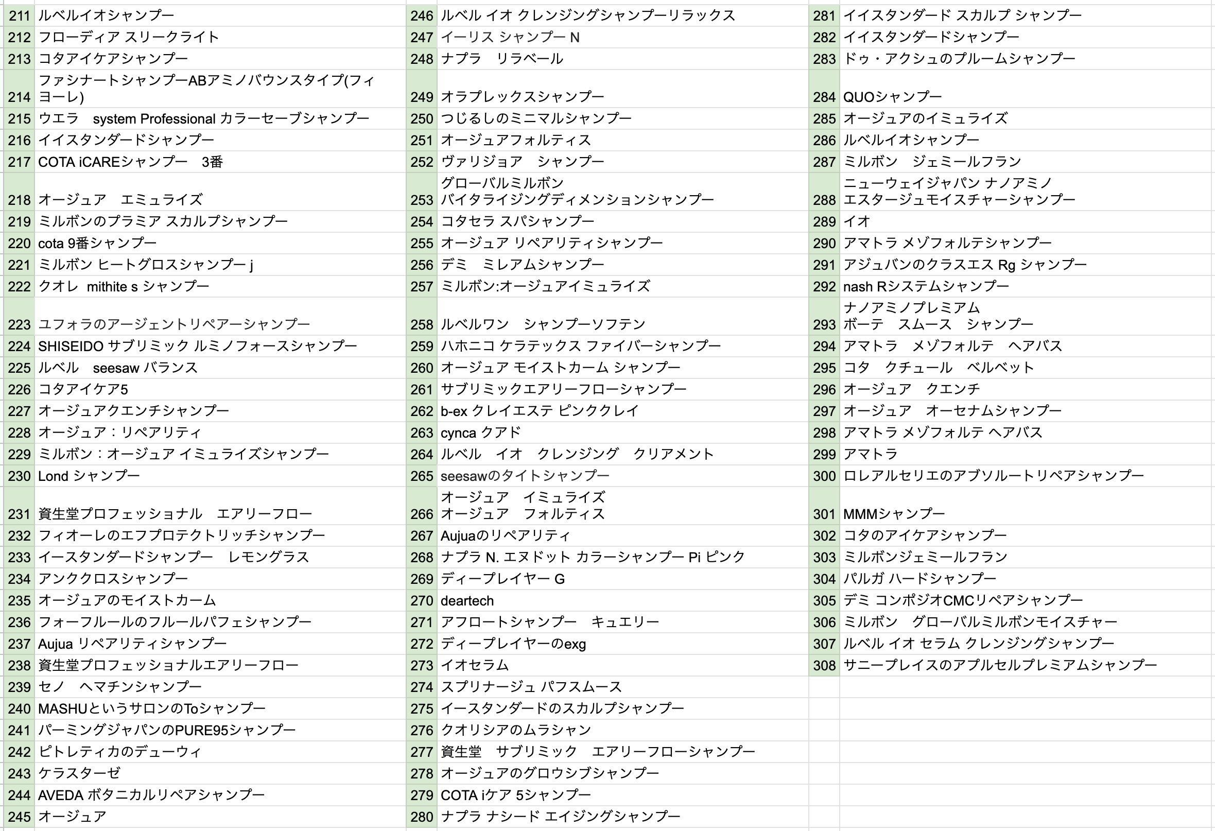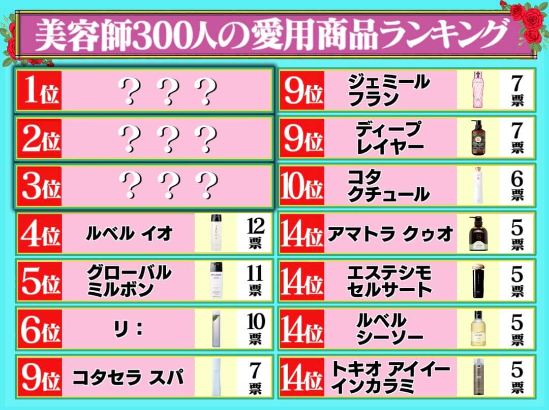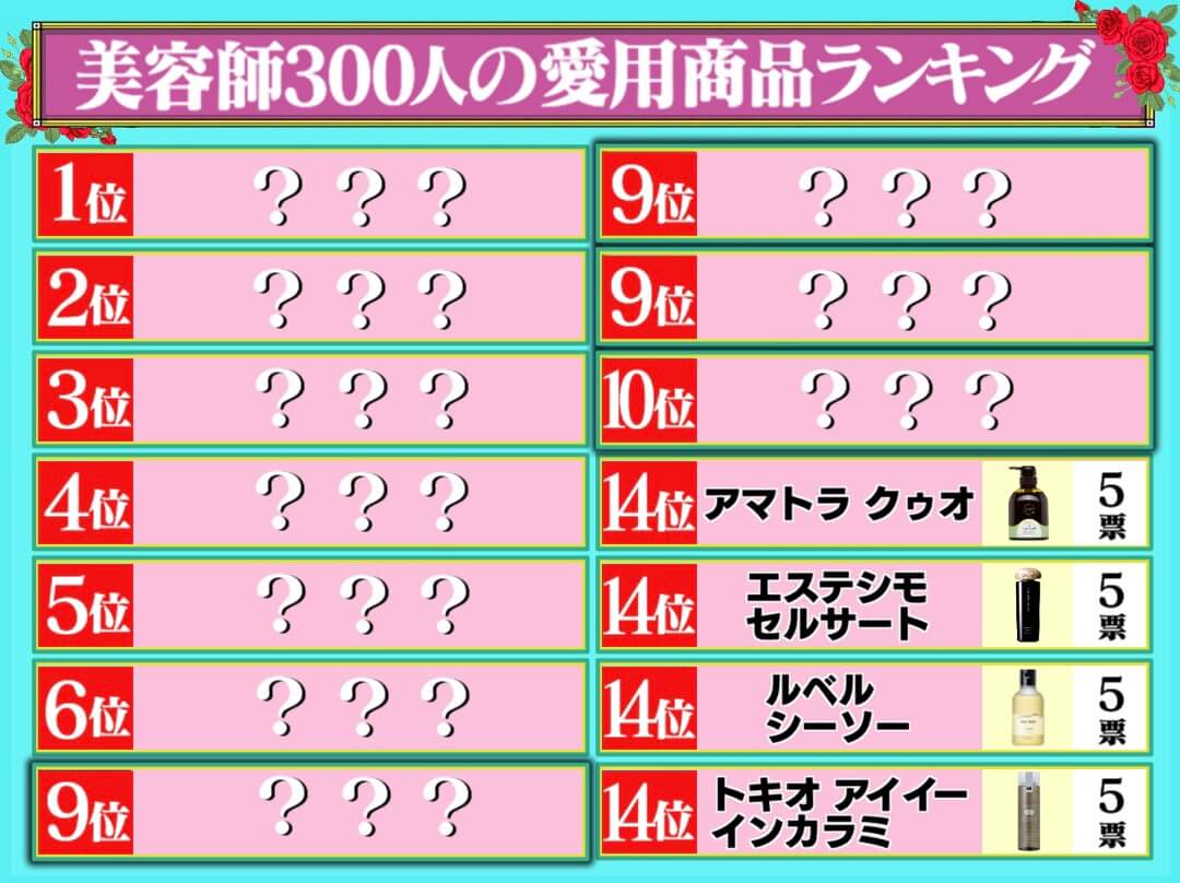 ……では、さっそく美容師300人に聞いた「普段使っているシャンプー」の中から、愛用人数が多かった順に