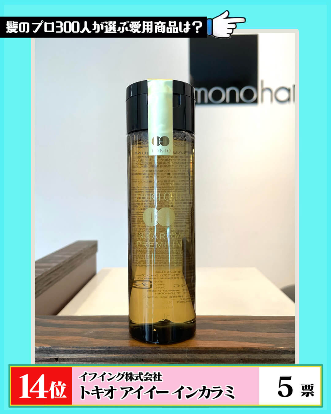 「トキオ アイイー インカラミ プラチナム シャンプー」に入っており、シリーズの中でも特に美容師に支持されていることが分かりました。