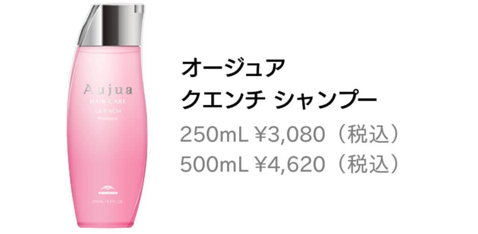 カラーやパーマなどによってパサつく髪に悩む方向け。うるおいのある髪に洗い上げ、トリートメントの作用しやすい下地をつくる「オージュア クエンチ シャンプー」。