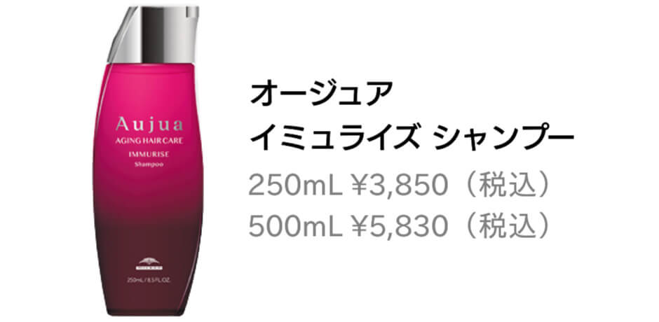 年齢とともにカラーやパーマのダメージが気になり出した方向け。毛髪強度をケアしながら髪を洗い上げ、トリートメントの作用しやすい下地をつくる「オージュア イミュライズ シャンプー」。