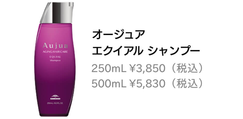 年齢とともに毛先のまとまりや根元の立ち上がりが気になり出した方へ向け。毛髪内密度をケアしながら髪をしなやかに洗い上げ、トリートメントの作用しやすい下地をつくる「オージュア エクイアル シャンプー」。