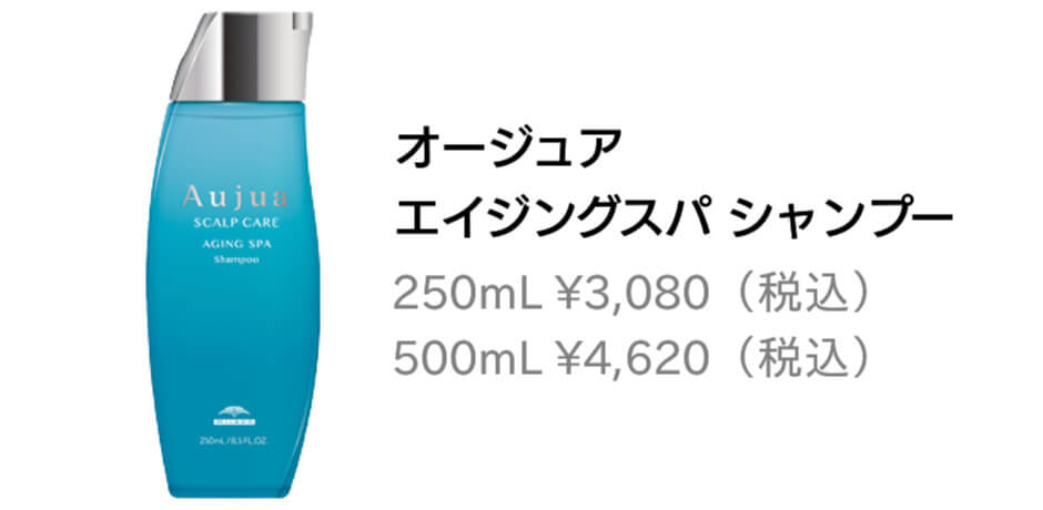トップのボリュームが気になりだした方向け。地肌をやさしく洗い上げ、うるおいのある健やかな地肌を保つ「オージュア エイジングスパ シャンプー」。