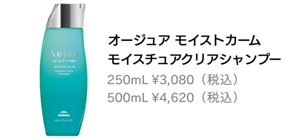 年齢とともに地肌の乾燥やかゆみが気になり出した方へ向け。年齢とともに乾燥し、かゆみが出やすくなった地肌を洗い上げ、かゆみやフケを防ぐ「オージュア モイストカーム モイスチュアクリアシャンプー」。