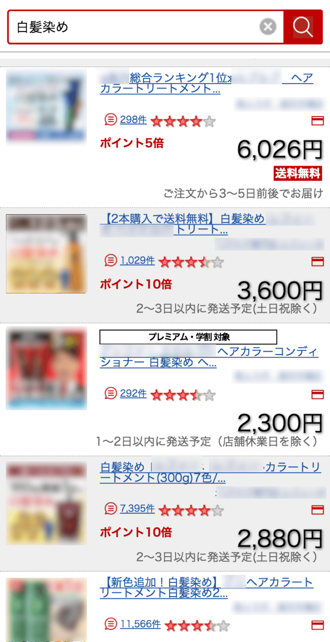 クチコミサイトや大手ネットモールで「白髪染め」と検索すると