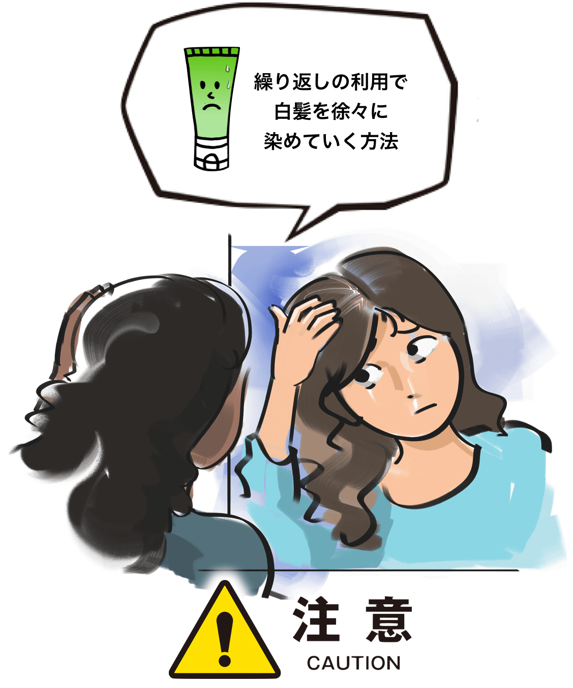 繰り返し利用することによって、徐々に白髪を染めていく方法を推奨していますが