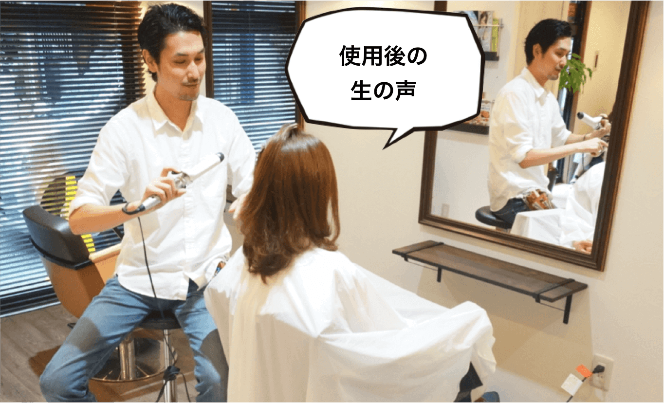 その中で、実際に両方の商品を利用されたお客様の髪に直接触れる。