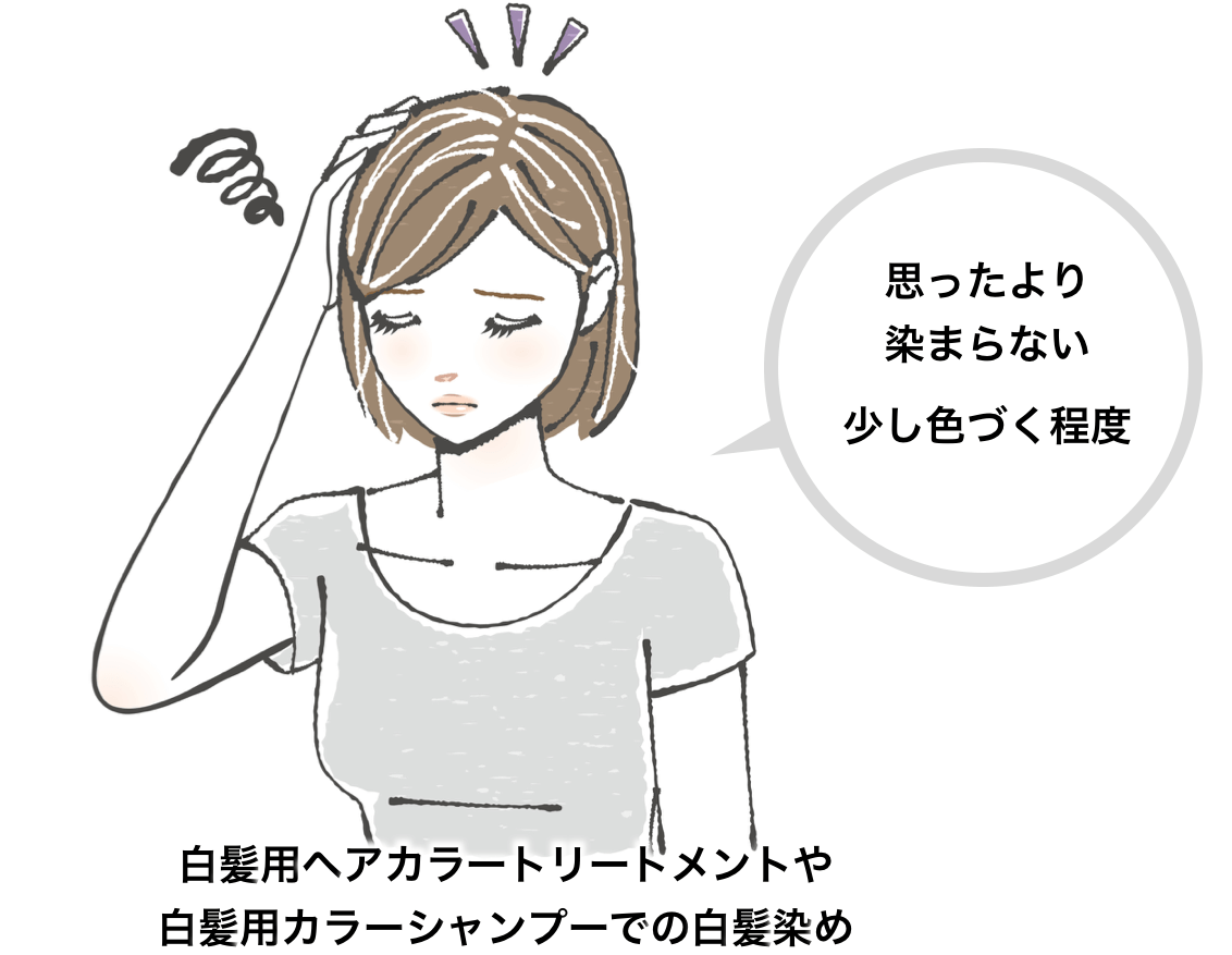 ただし、白髪用ヘアカラートリートメントや白髪用カラーシャンプーは、薬剤の力で髪内部に働きかけて染めることができないため