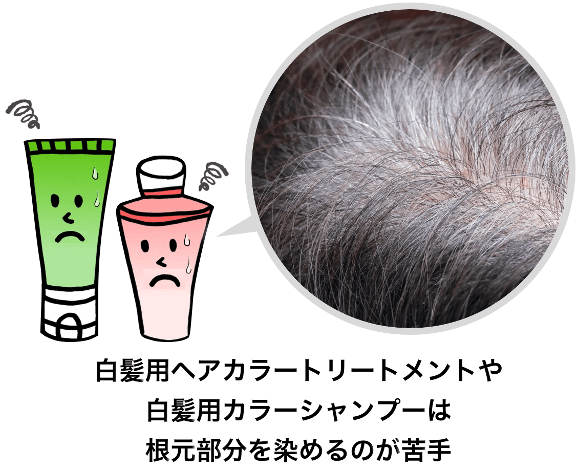 一番染まって欲しい根元部分は、いつまでもキレイに染まらず、白髪が目立つままになってしまう、という状況を抜け出すことができません。