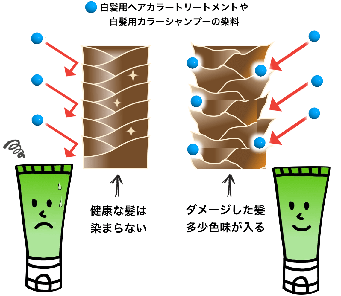 ……というのも、白髪用ヘアカラートリートメントや白髪用カラーシャンプーを繰り返し利用している髪の毛は
