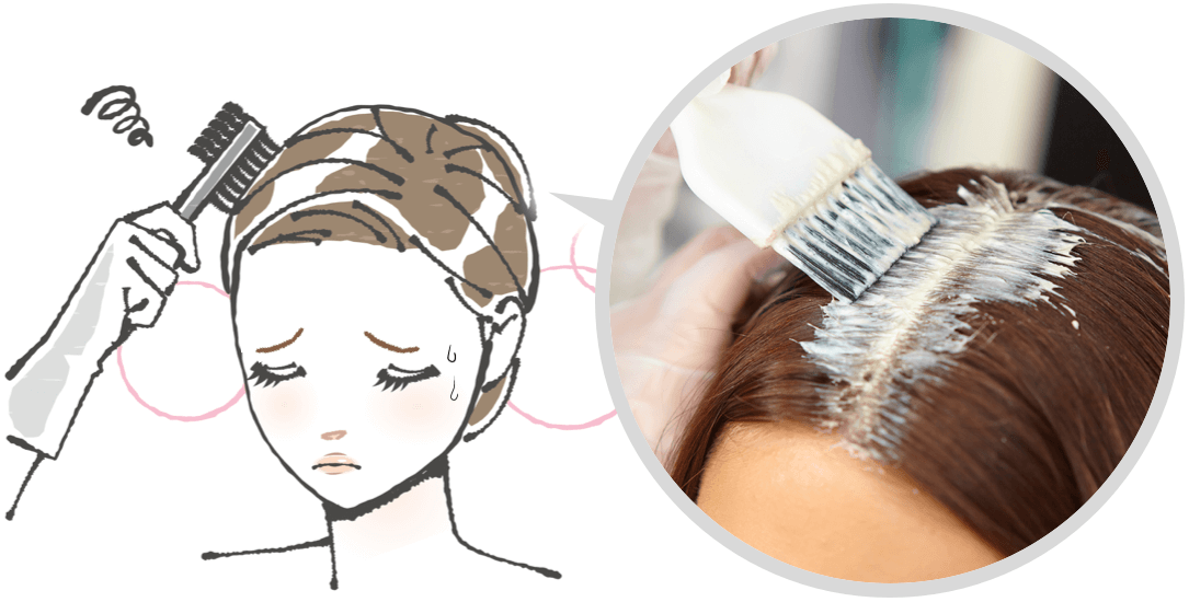 しっかりと白髪を染めるために、通常のヘアカラーよりも染料が濃く配合された薬剤を使い「髪内部に直接働きかけながら白髪を染める」というアプローチを取ります。