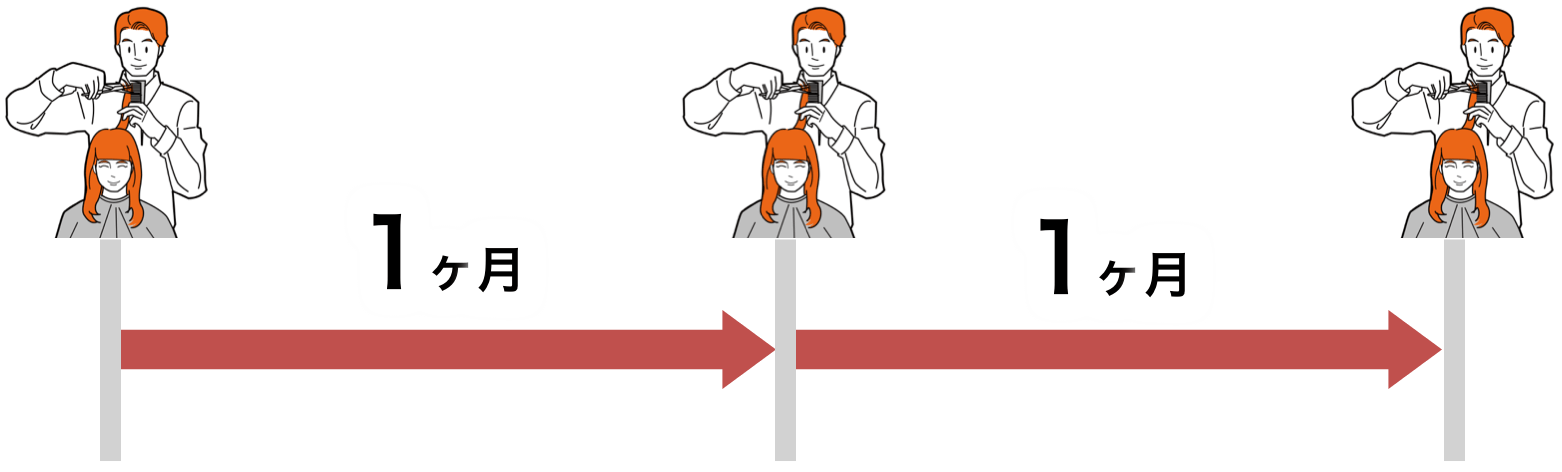 実際の来店頻度は、お客様の髪質や美意識の程度によって多少前後することを、ご理解下さい。