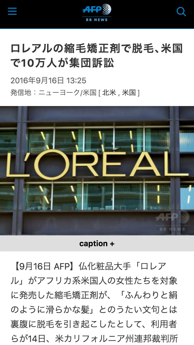 なお、2016年には、アメリカで仏化粧品大手「ロレアル(L’Oreal)」が発売した市販の縮毛矯正剤が原因で