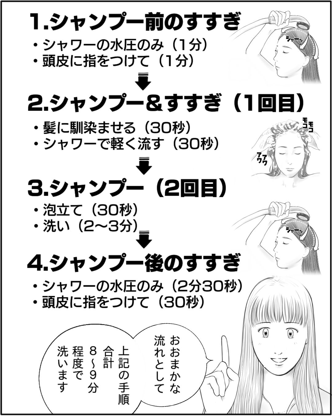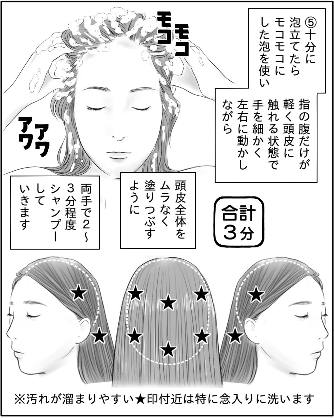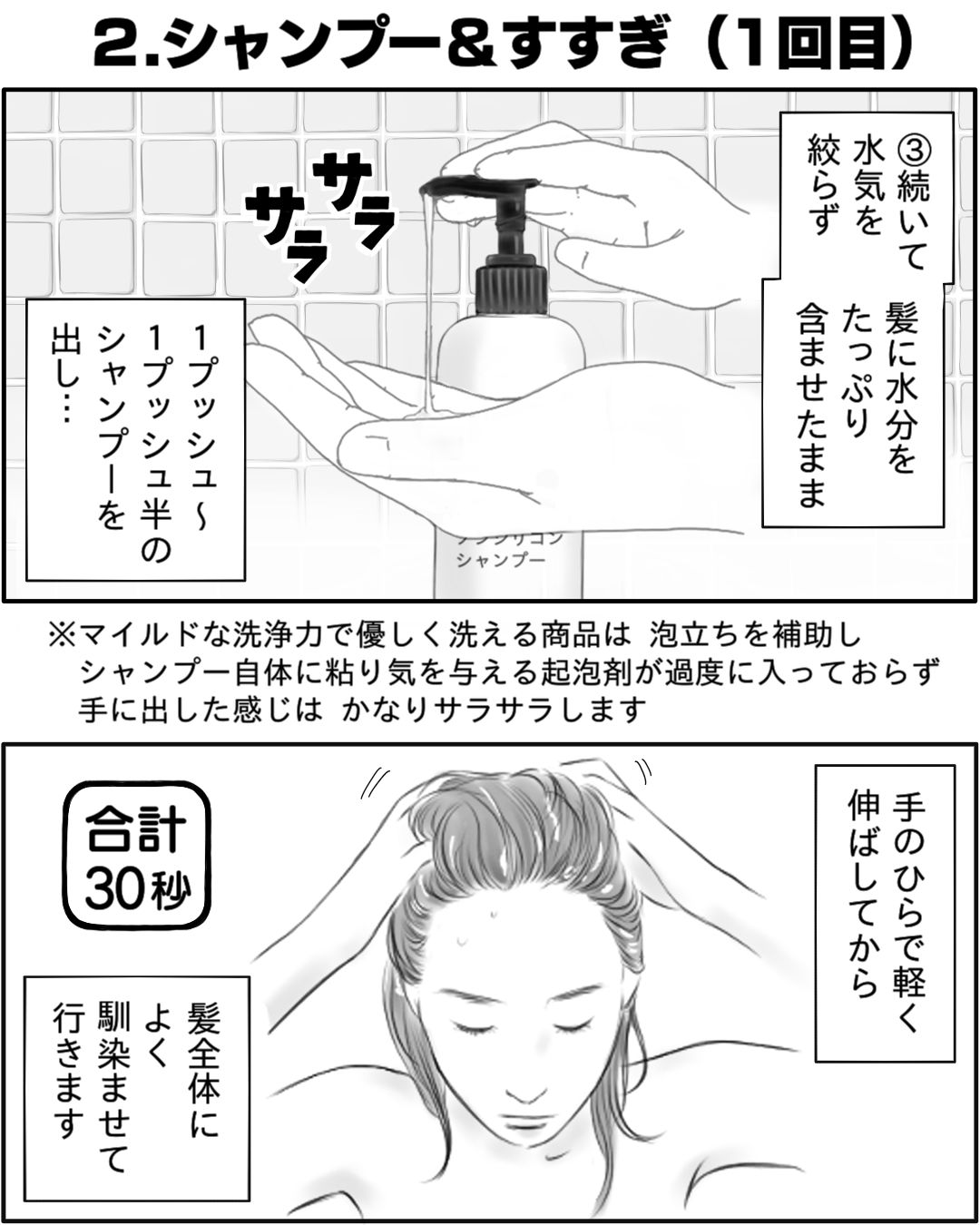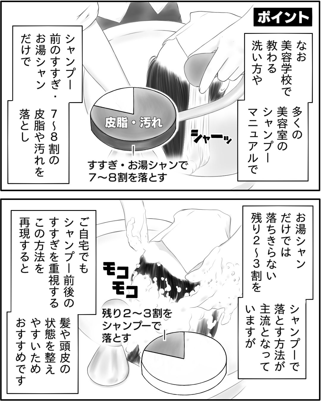 ①【漫画】美容師のシャンプーテクニックをご自宅で再現。効果的なシャンプーの仕方・髪の毛の洗い方