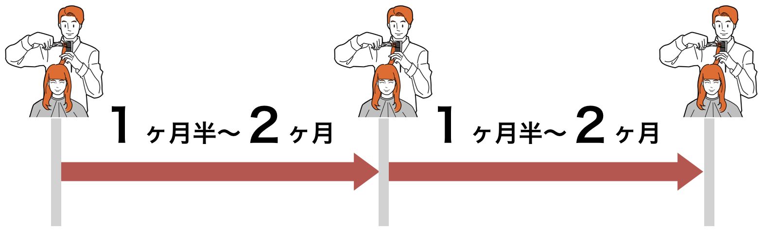 そのため、クセの強さにもよりますが1ヶ月半〜2ヶ月に1回程度、定期的に縮毛矯正をかけて頂くと、髪を真っ直ぐな状態を保つことができます。