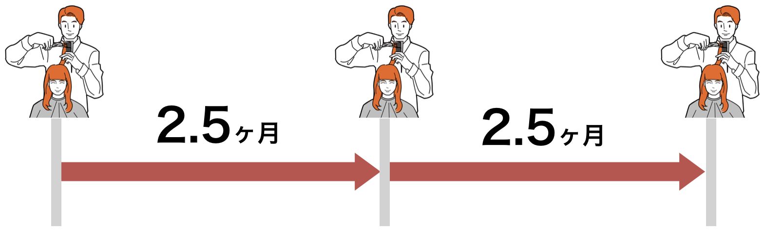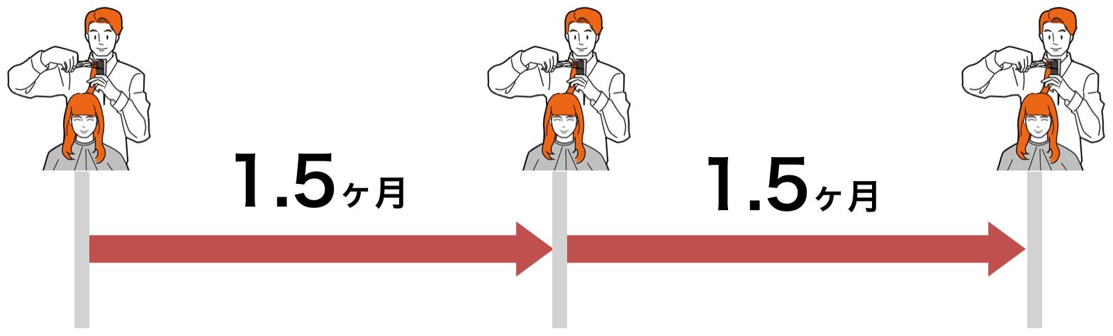 縮毛矯正後、1.5〜2.5ヶ月が経過して、根元部分が1.5〜2.5センチ程度伸びてくると、クセやうねりが気になるようになります。