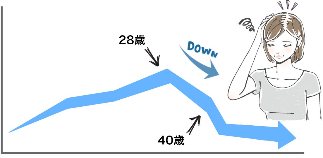 また、その後、40歳を超えたタイミングでもう一つの転換期があり、40歳以降はさらに急激に髪の質やコンディションが衰えていってしまいます。