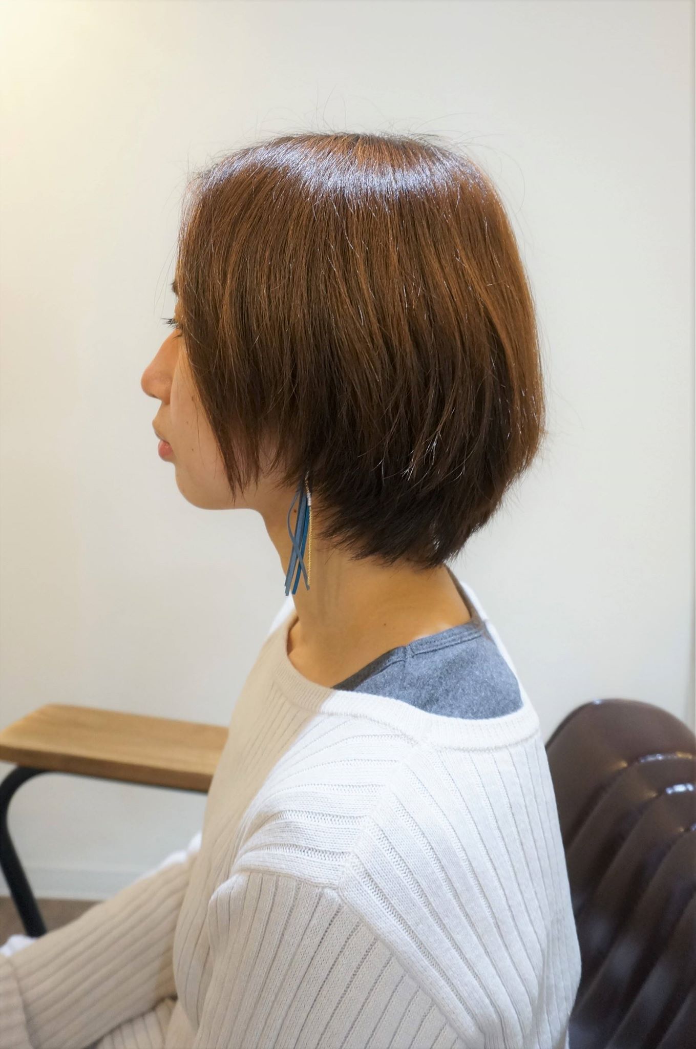 直毛で後頭部が絶壁に見えてしまうボブスタイル→前下がりのショートレイヤースタイルで悩みを解決