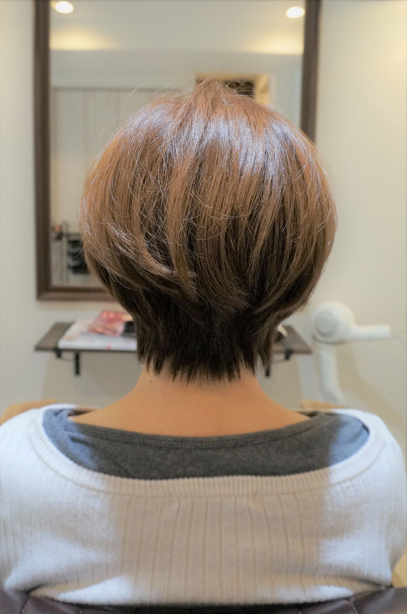町田美容院の知恵袋 > お客様の施術事例 > 髪が伸びてメリハリのないショート→ふんわりシルエットの大人ショートへ