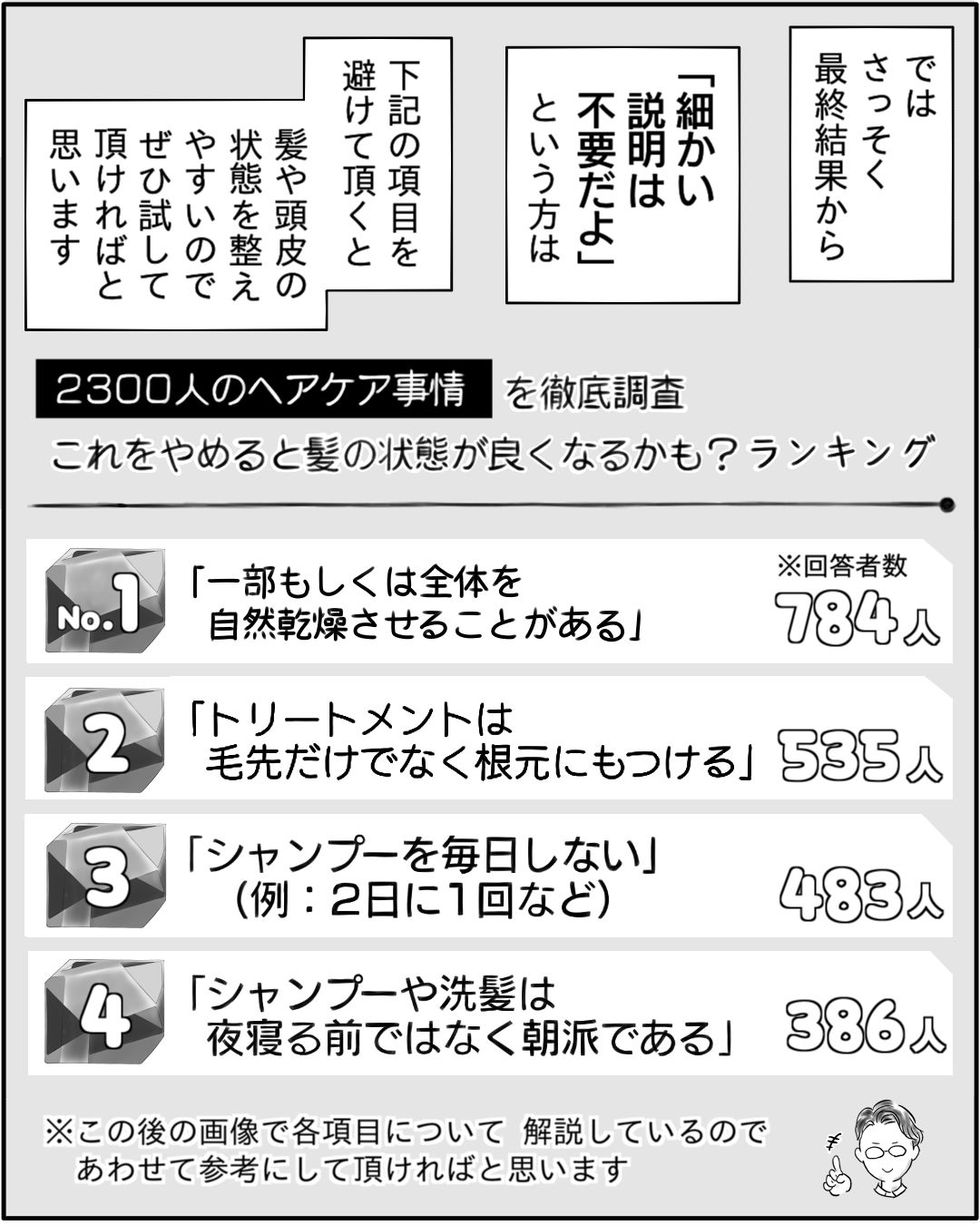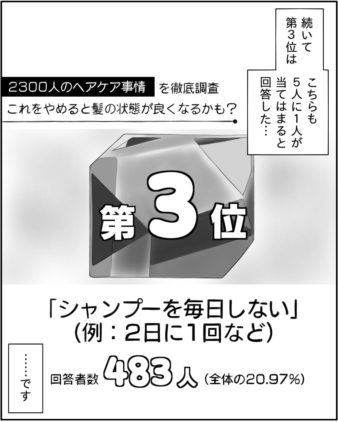 【漫画】2300人のヘアケア事情を徹底調査。これをやめると髪の状態が良くなるかも?ランキング