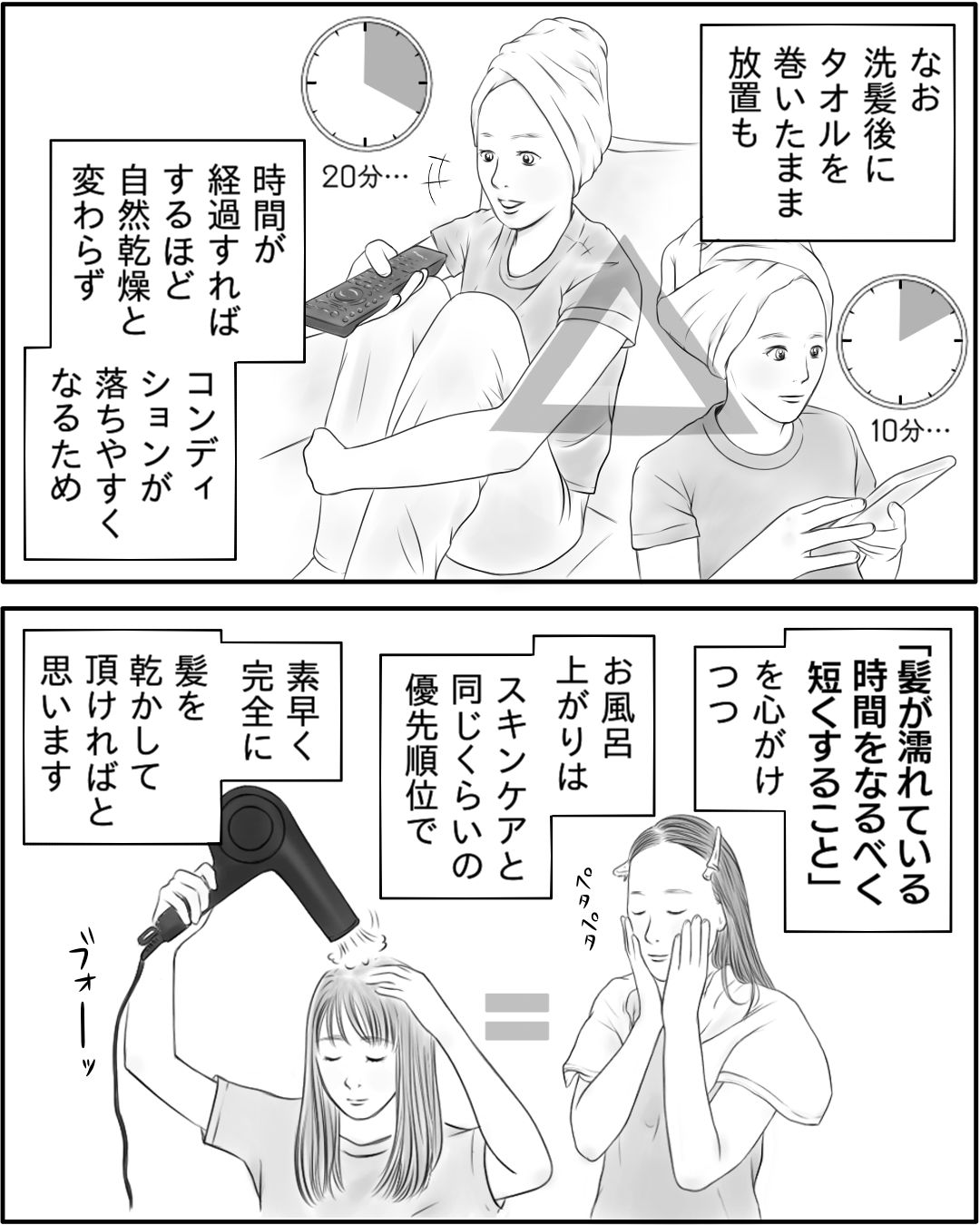 【漫画】時短でもツヤ・手触り・まとまりに差が出るドライヤーの乾かし方…続きを読む