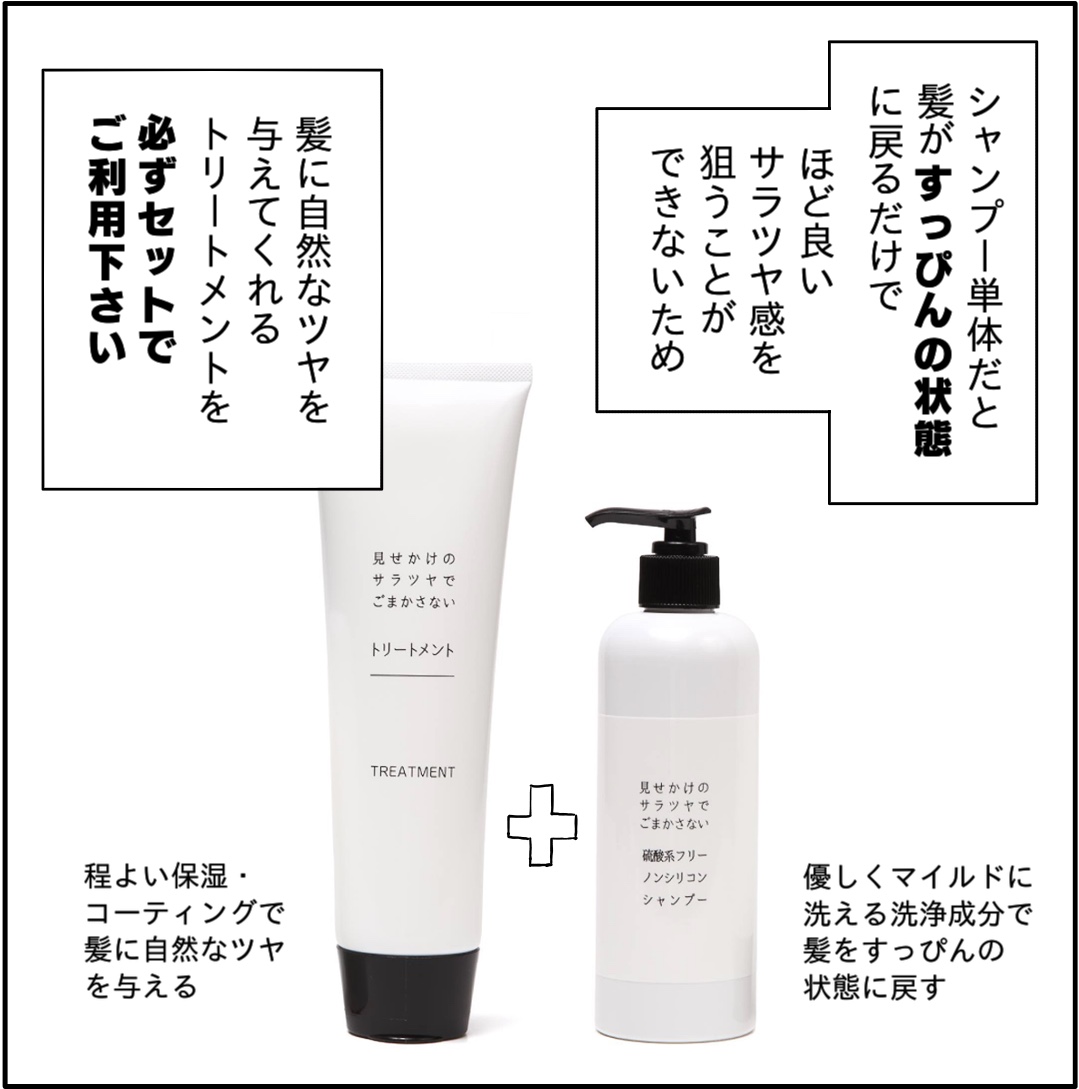 見せかけのサラツヤでごまかさない 硫酸系フリーノンシリコンシャンプー&トリートメント レビュー