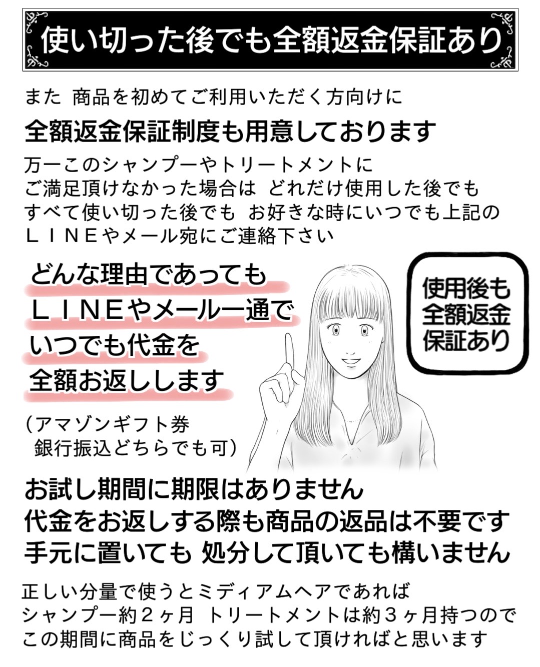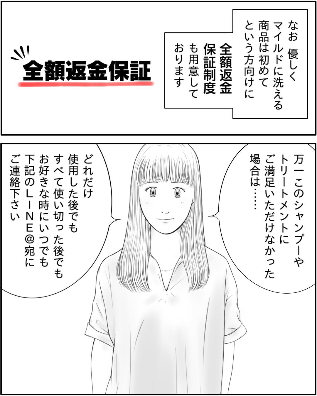 シャンプーやトリートメントに関することはもちろんのこと、髪やヘアケアに関してご不明な点、解決できない疑問や悩みがございましたら、お気軽にLINE宛にご質問・ご相談ください。