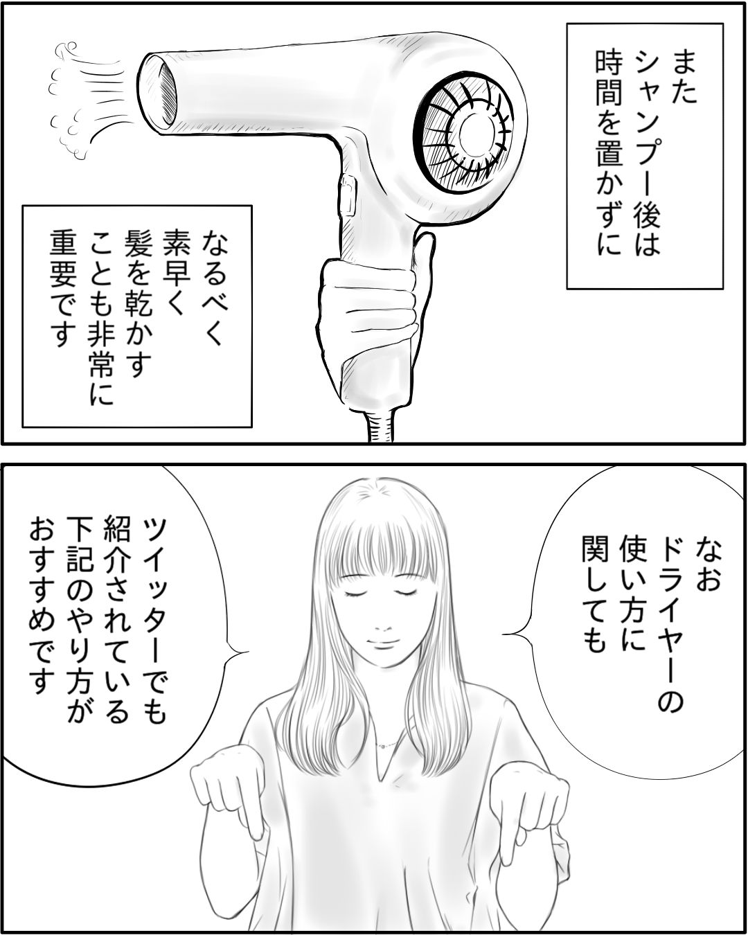 ①【漫画】時短でもツヤ・手触り・まとまりに差が出るドライヤーの乾かし方 pic.twitter.com/njfQQkRQ2T