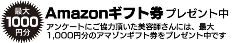 ※アンケートにご協力頂いた美容師さんには、最大1,000円分のアマゾンギフト券をプレゼント中です
