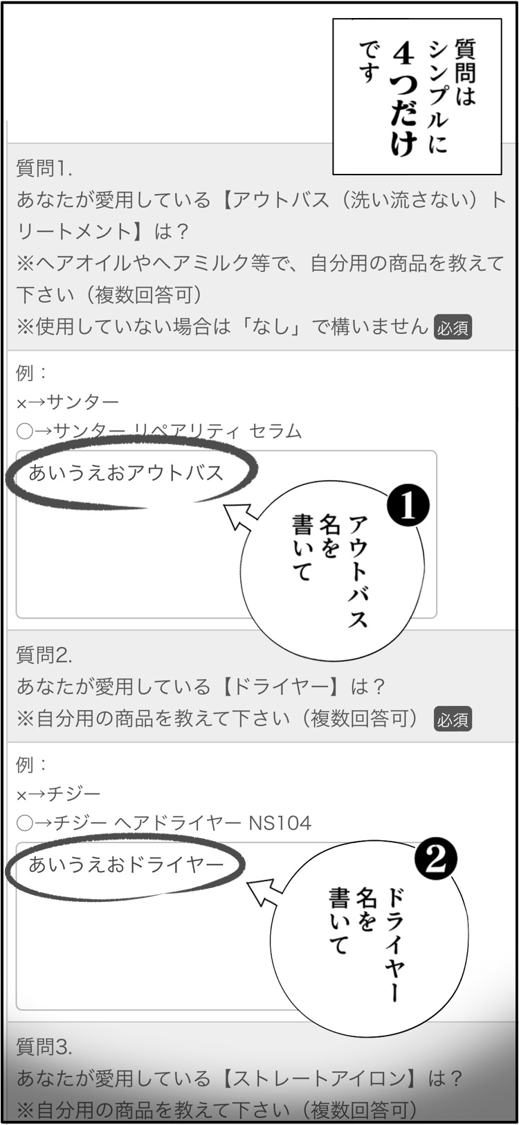 商品名を回答頂く際には、