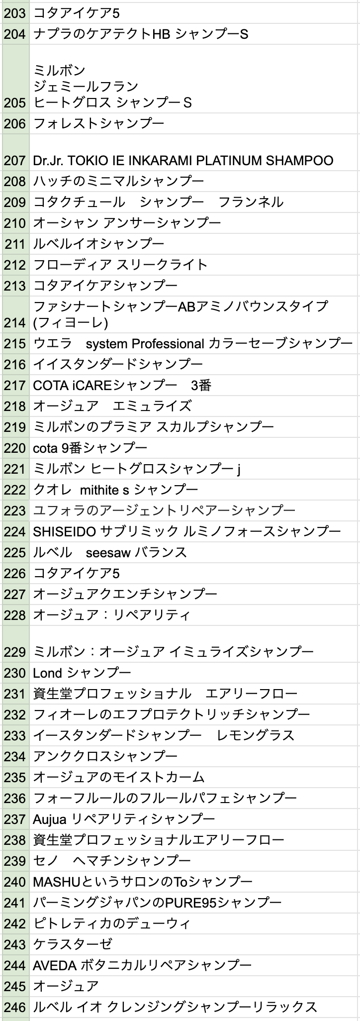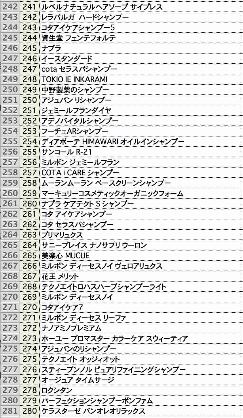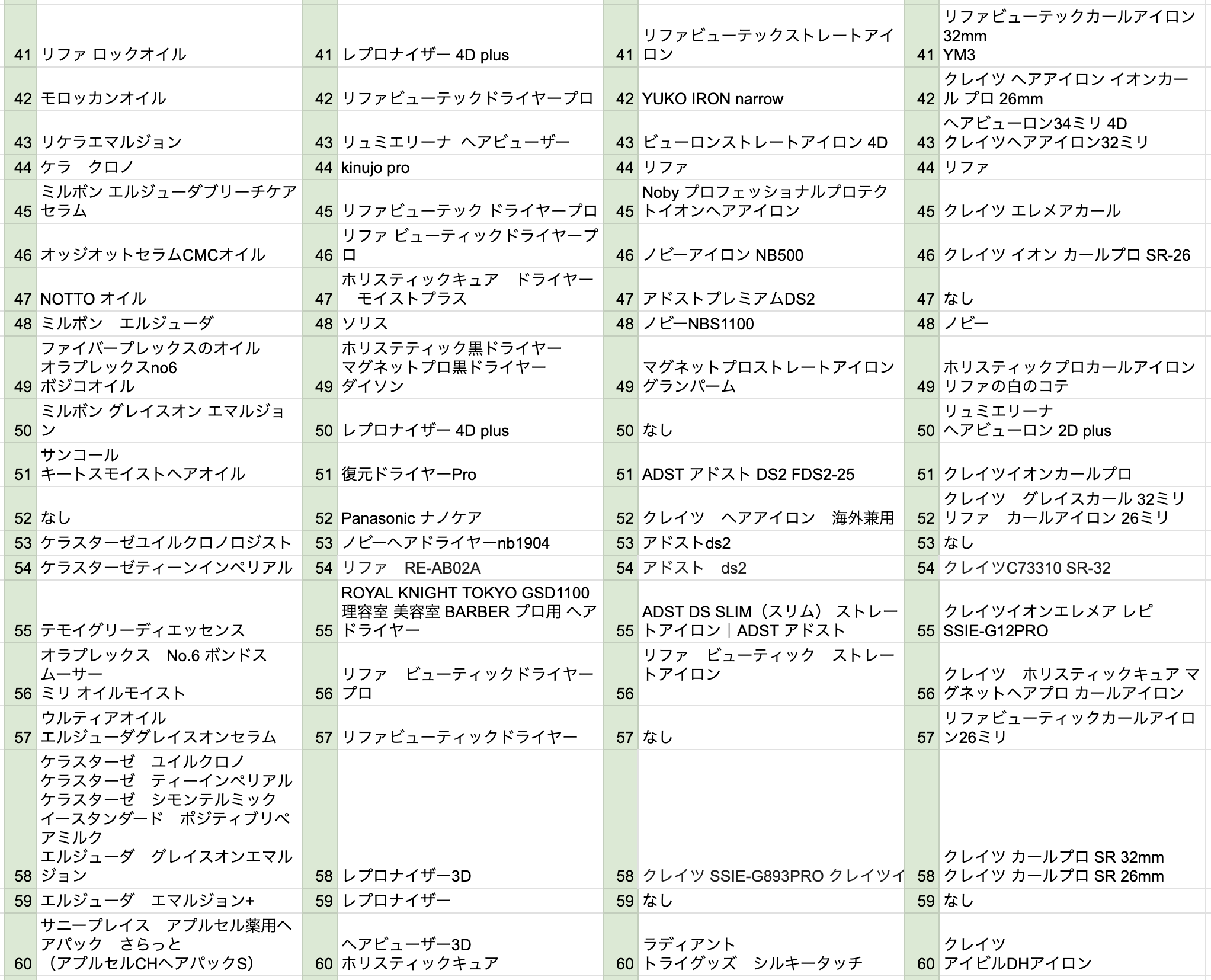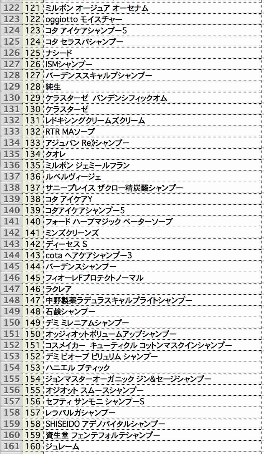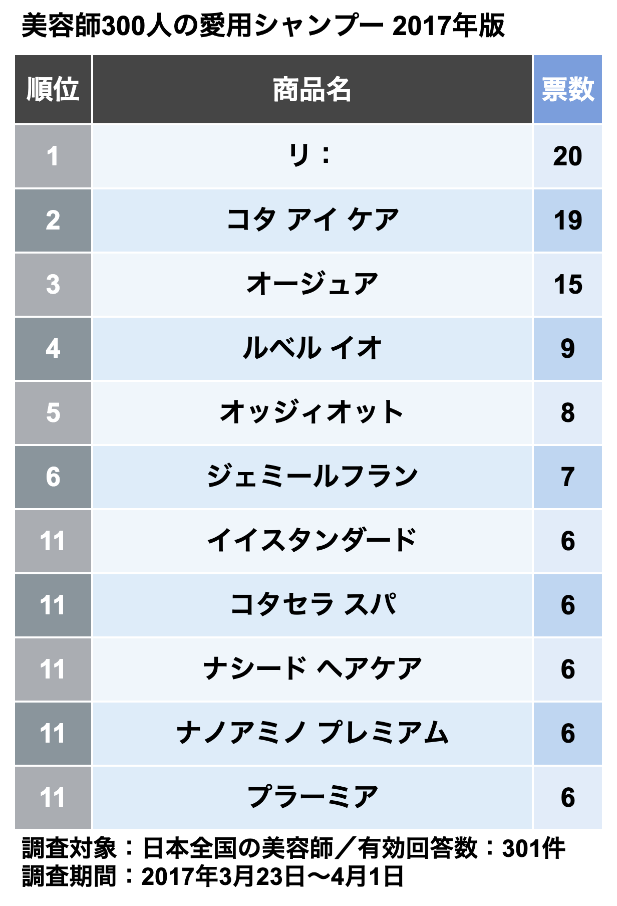 なお、下記が2017年に実施した「美容師300人の愛用シャンプー調査(ランキング)」の結果です。