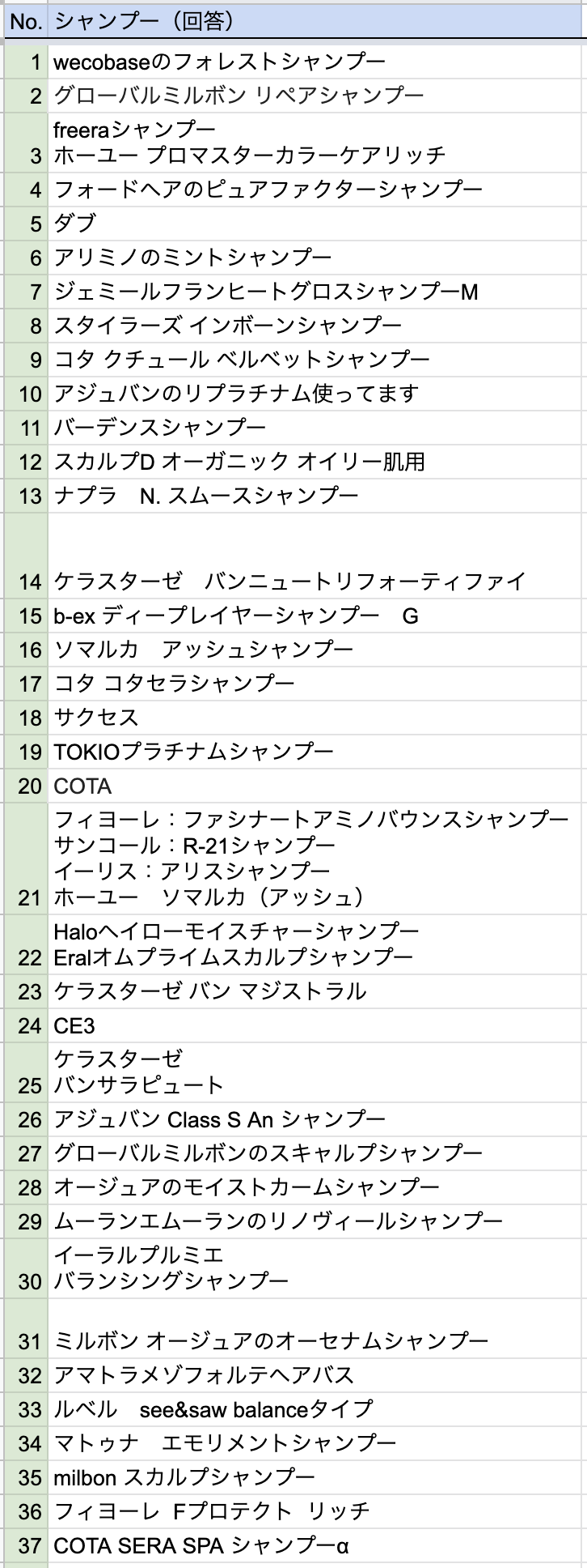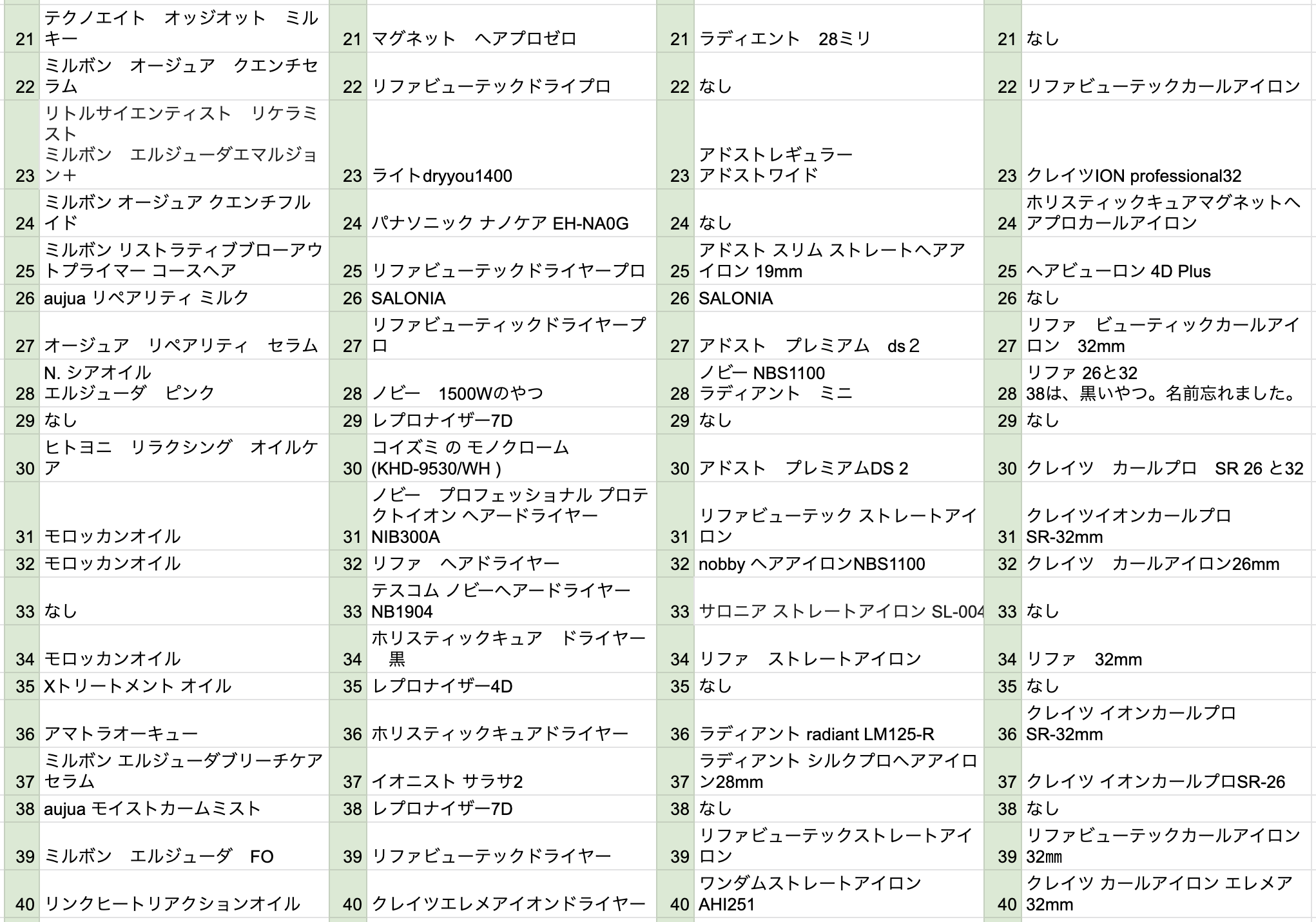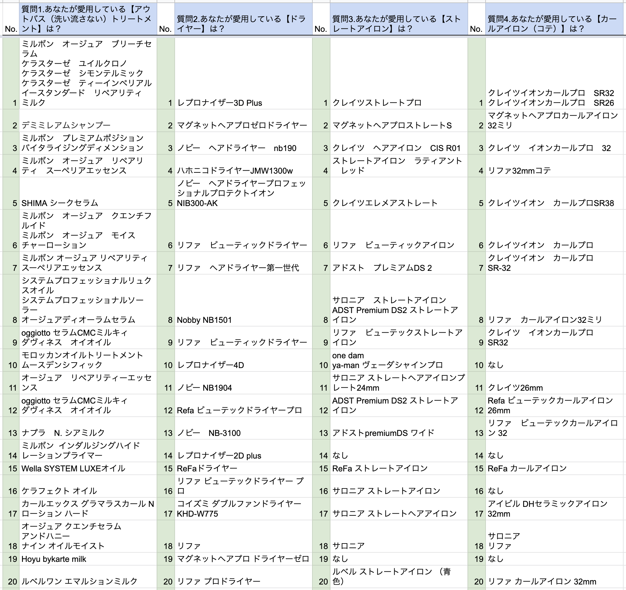 また、下記がアンケートにご協力頂いた美容師さんの全回答です。